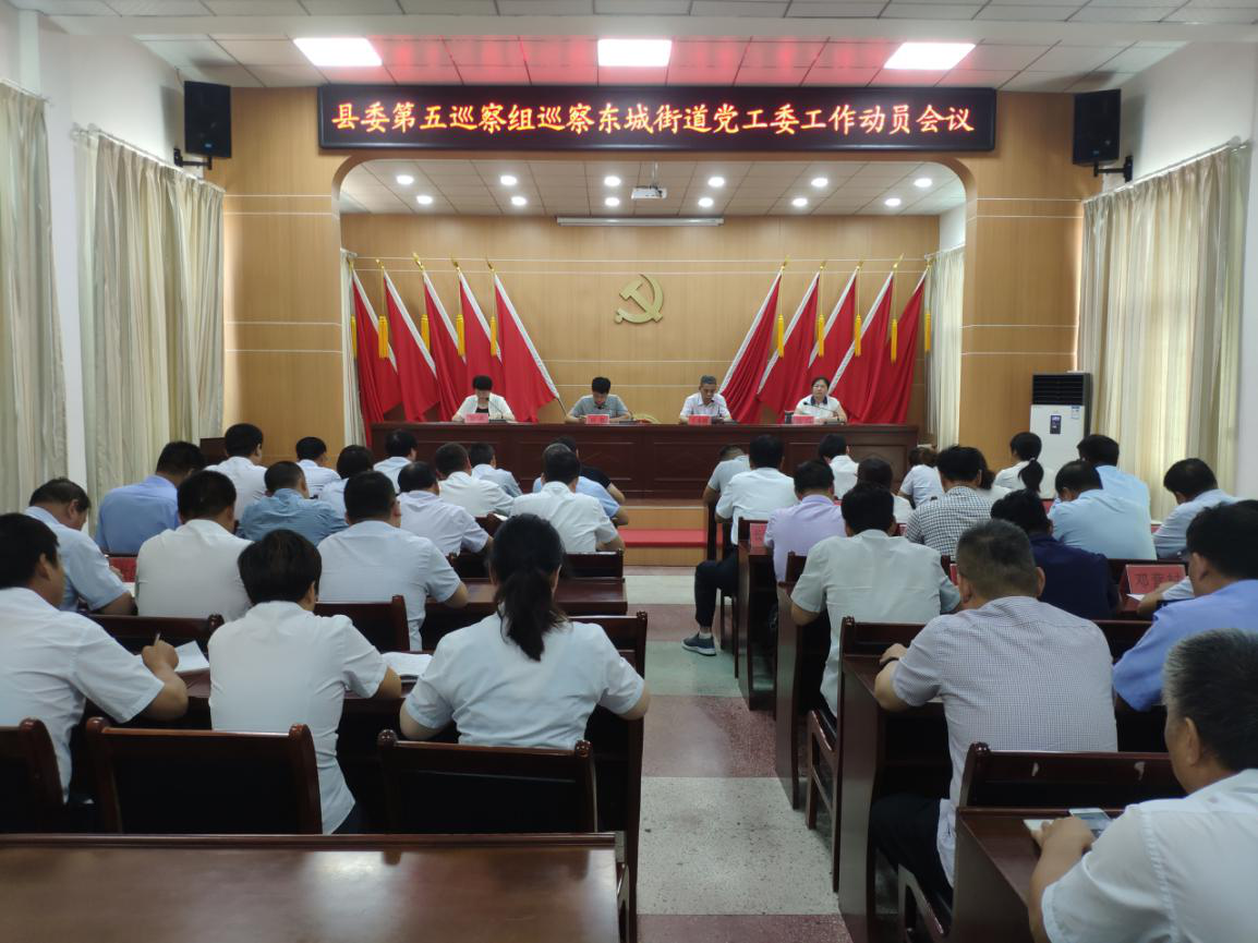 第五巡察组副组长仇绵同志及巡察组全体成员、东城街道党工委成员、机关各办公室负责同志、各村(社区)党支部书记共计37人参加了会议。
