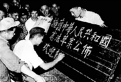 3月23日,宪法起草委员会第一次会议在中南海勤政殿举行,毛泽东主持会议并代表中国共产党向会议正式提出《中华人民共和国宪法草案(初稿)》。6月14日宪法(草案)正式公布后,全国有1.5亿人次参与了讨论,各方提出意见118万多条。