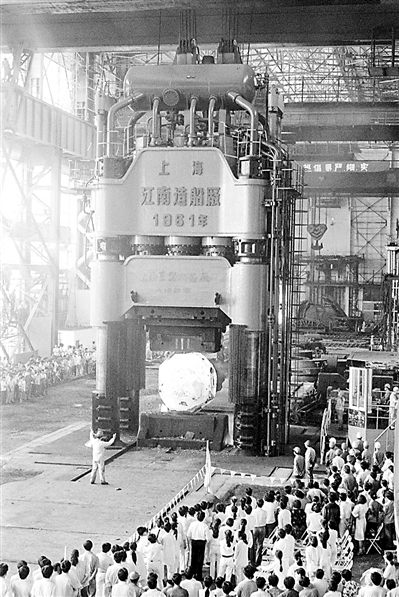 1958年5月,中国共产党第八次全国代表大会第二次会议在北京召开,煤炭工业部副部长沈鸿写信给毛泽东,建议在上海制造一台万吨水压机。毛泽东问上海市委负责人:上海能不能干?愿不愿干?