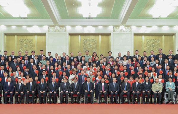 上午11时,习近平等来到人民大会堂北大厅,全场响起热烈掌声。习近平等同代表们热情握手,关切地询问他们的工作生活情况,并同大家合影留念。