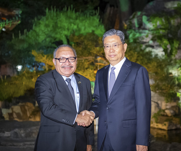 4月25日,中共中央政治局常委、中央纪委书记赵乐际在北京钓鱼台国宾馆会见巴布亚新几内亚总理奥尼尔。(新华社记者 翟健岚 摄)