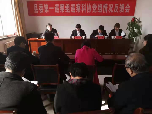 根据县委巡察工作领导小组的部署,县委第一巡察组向科协党组反馈巡察情况。3月12日,县委巡察办副主任顾振传达了刘莉书记在专题听取2018年第四轮巡察情况汇报后的重要讲话精神,县委第一巡察组组长武春玲,副组长闫小英向科协党组书记胡宏川反馈了巡察情况。随后,武春玲代表县委第一巡察组向科协领导班子进行了反馈,科协党组书记胡宏川主持会议并作了表态发言。