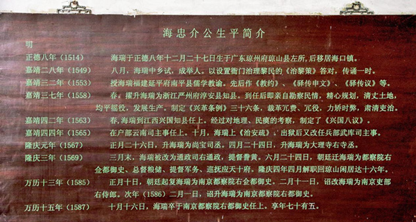 杭州千岛湖龙山岛海瑞祠中海瑞生平简介