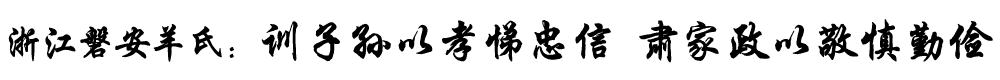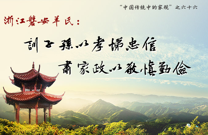 羊氏一族迁徙来到磐安后,大皿村的先祖羊愔以羊祜《诫子书》为蓝本,将其中所蕴含的人生哲理与羊氏先祖的家规家训相结合,提炼总结出了“悬规、植矩、诒勤、师俭、有孚、谦益”十二字家规箴言。