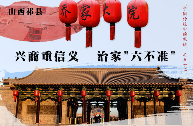 家业发达、家族兴旺,与家规有关。乔家祖上传下了六条家规。制定家规的起因是乔家的发家人乔贵发看到与他合伙的人有了钱以后吃喝嫖赌而且还抽回老本。