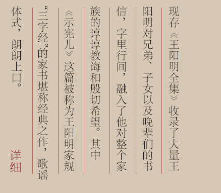 “幼儿曹,听教诲:勤读书,要孝弟……”一代大儒王阳明把祖辈对自己的教育和自身的哲学思想相结合,通过一封封家书对后代子孙谆谆教诲,句句箴言,犹在耳畔,日久弥新。“国史以载前纪,家传以申世模”,回眸王氏家族沧桑数百载,对族箴祖训的坚守是他们心中那盏永远不灭的灯。详细